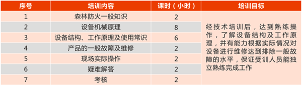 三、质保期内服务措施 ① 每年可免费上门保养,如货物发生故障时,维修人员接到维修电话后立即响应,及时到达现场,提供不间断的服务直到结束 ② 按国家有关法规实施“三包”(日常维护和保养及维修服务,时间从验收通过、使用单位接收并使用之日算起) ③ 建立健全用户档案,定期电话回访,对用户反映质量问题,及时给予答复,热情接待,细心解答并做好记录,立即处理。 ④ “三包”有效期内发生质量问题,配件免费更换,重大质量问题更换整机。(质保期内负责修理和替换任何由于设备自身的质量问题造成的损坏及故障。) ⑤ 预约举办用户培训班,进行维修、保养、使用等技术培训。 ⑥ 设立服务热线电话:13348885001